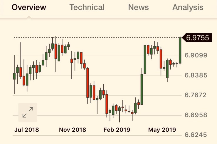 SocGen: “As we have learned in the past, fundamentals alone are insufficient for the Chinese yuan to break 7,” said Jason Daw, head of emerging-markets strategy at Société Générale. “Policy makers have the tools to stop it and, put simply, it is their choice what happens.” While the Chinese currency hasn’t breached that level in a decade, he said the odds of the yuan breaking 7 in the next month or two has increased substantially
