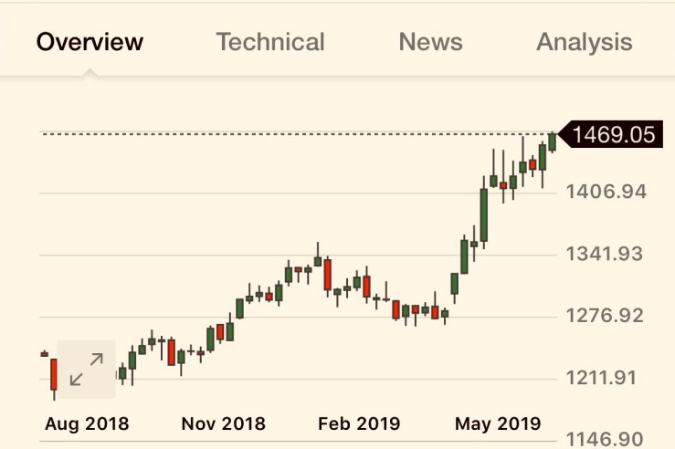 Gold spiked to fresh multi-year tops, above the $1480 region • The trading range constituted towards the formation of a bullish continuation – rectangle chart pattern and with technical indicators on the daily charts holding in the bullish territory, the stage seems all set for an extension of the positive momentum • The yellow metal seems more likely to extend the ongoing appreciating move further towards $1478-80 intermediate resistance en-route the key $1500 psychological mark for the first time since April 2013 amid the global flight to safety • Email Now To Access Our Next SPDR Gold Trust (GLD) Algo Trade Alert: inquiries@ppchk.net