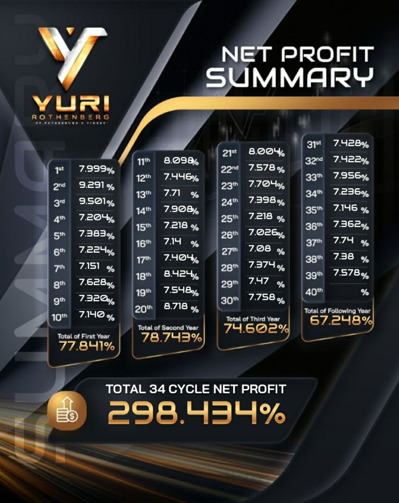 Ignore This And You Lose! Posted on January 3, 2023 by http://wealthcreation.club ⭐️⭐️ Yuri Rothenburg has paid out a total of 298.434% over 39 cycles and for its 40th cycle it paid out 5.814%. Note: 1 cycle = 5 weeksIn 2023 Let Us Create Passive Income For You And End 2023 With A Bang! Contact Us At bit.ly/AlgoTrader Share this: Share on X (Opens in new window) X Share on Facebook (Opens in new window) Facebook Like Loading... Published by http://wealthcreation.club http://wealthcreation.club—We are educating regular people about how to be able to make more money in a disciplined way View all posts by http://wealthcreation.club