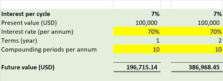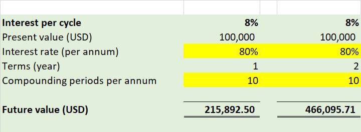 💯 💯 The Power Of Compounding: An Investor who invests 100K USD will see his investment turn into 466K USD in 24 months (based on 8% per cycle. 1 year = 10 cycles)