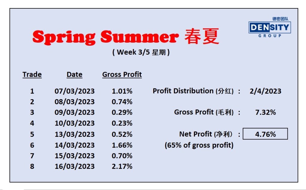 In Feb, Spring Summer made 9.759% for its first payout. The payout was on 26 Feb