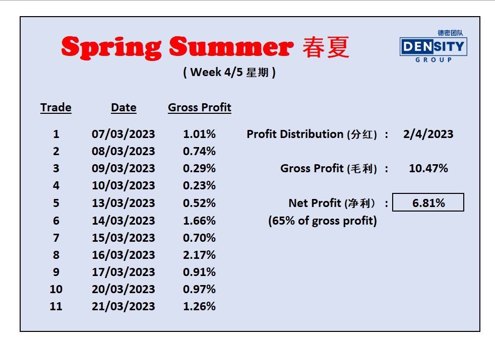 In Feb, Spring Summer made 9.759% for its first payout. The payout was on 26 Feb