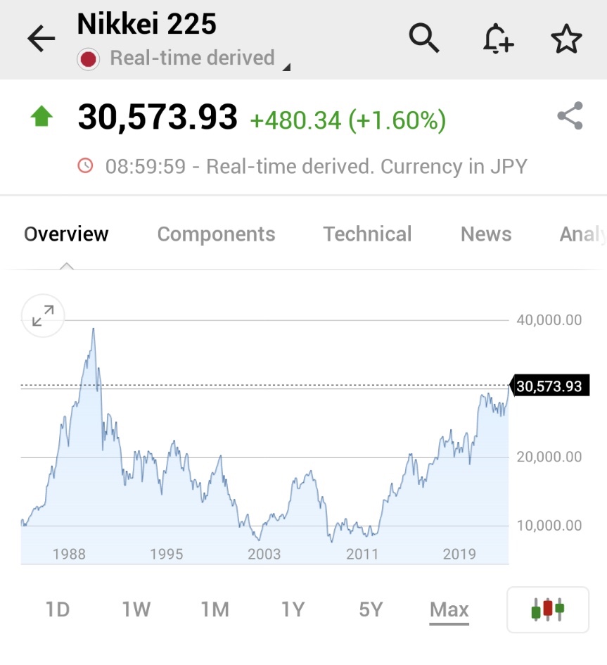 🇯🇵 🇯🇵 JAPAN’S NIKKEI 225 SURGES TO 33-YEAR HIGH, ENDS AT HIGHEST LEVEL SINCE 1990