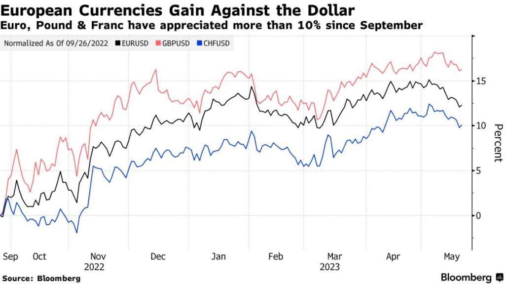 🚨 🚨 We see the euro, Swiss franc and sterling rising further versus the dollar. The euro has gained 13% versus the greenback since its September low