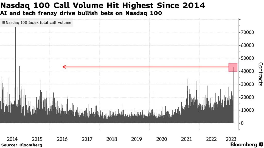 🚨 🚨 #Nasdaq 100 #call volumes have hit their #highest level since 2014. These are essentially contracts that allow holders to buy the underlying stock