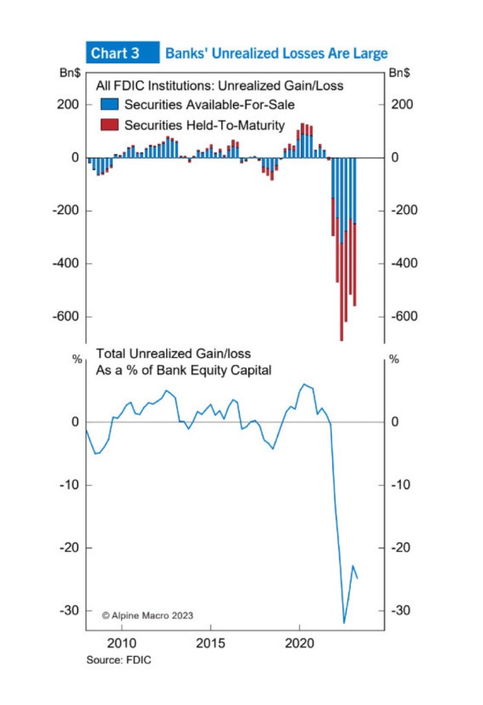 🚨 🚨 U.S. Banks are facing roughly $600 billion of unrealized losses which accounts for roughly 25% of total banking capital, near the highest levels in history