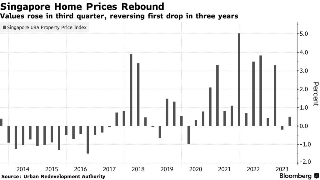 🇸🇬 🇸🇬 Singapore: Private home valuations rose 0.5% from the previous three months, reversing a 0.2% drop in the second quarter, initial estimates from the Urban Redevelopment Authority showed Monday