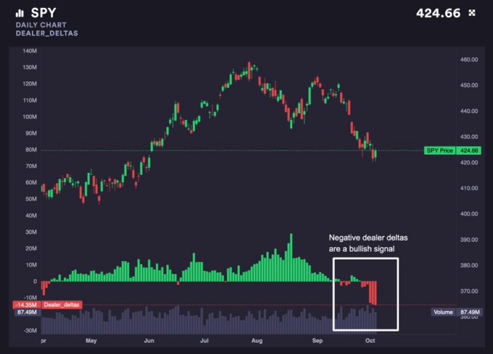 🚨 🚨 SPDR ETF Trust (SPY): Dealer deltas continue to decline indicating a bullish sentiment