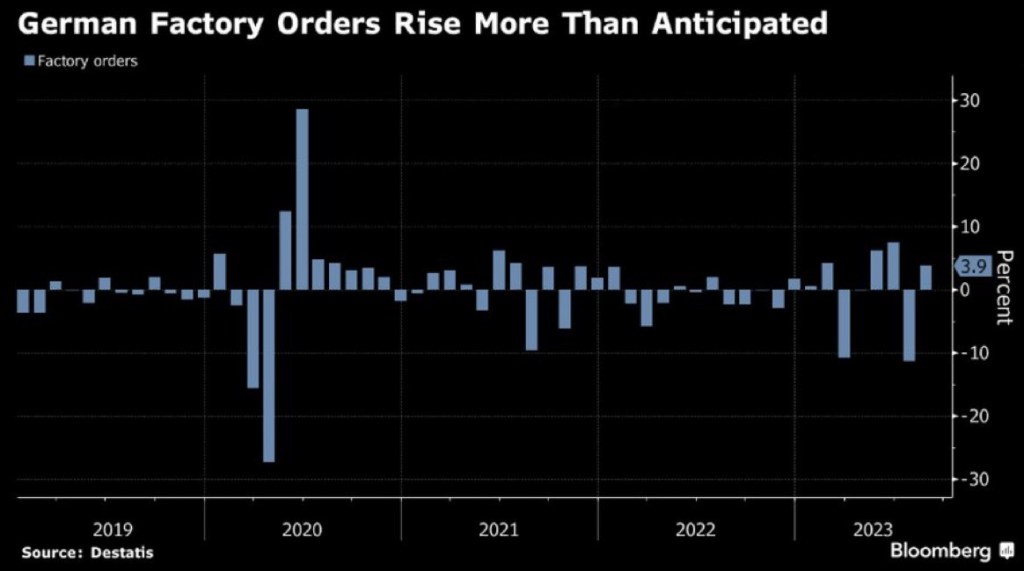 🇩🇪 🇩🇪 German factory orders rise in Aug. Demand rose 3.9% from Jul, more than twice as fast as expected