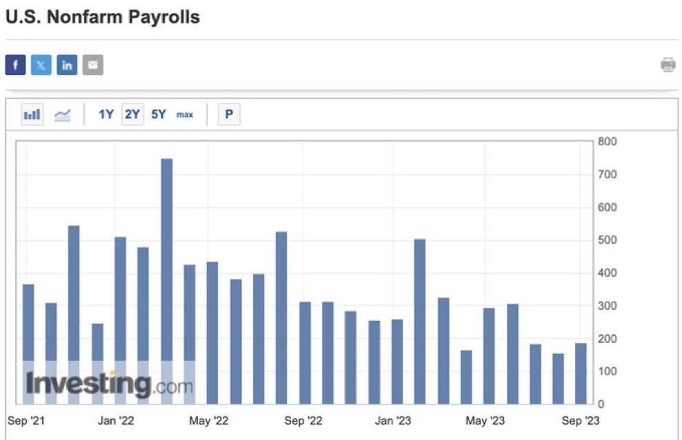 Jobs Report: String Data Is “Bad News” Posted on October 6, 2023 by http://wealthcreation.club 🚨 🚨 Event Alert: Markets expect 170,000 jobs added in September with the unemployment rate falling from 3.8% to 3.7%. Also worth watching is a potential revision to the August jobs report number which showed 187,000 jobs addedInvestment: Bespoke And Focused. Watch Videos:bit.ly/3Os0cqe (Part 1)bit.ly/3Om79J1 (Part 2)Future-Proof Your Portfolio—Watch Video:bit.ly/3qgzKaQContact Us On WhatsApp: bit.ly/AlgoTraderFree Algorithm Newsletter: bit.ly/3PmnEXRTik Tok: @ashwinppc09YouTube: bit.ly/AlgoWealthThreads: bit.ly/43dGDauVisit Our New Website: Algomasters.com#Algomasters #MoneyMakesMoney #MoneyNeverSleeps #Megatrends #FutureProof Share this: Share on X (Opens in new window) X Share on Facebook (Opens in new window) Facebook Like Loading... Published by http://wealthcreation.club http://wealthcreation.club—We are educating regular people about how to be able to make more money in a disciplined way View all posts by http://wealthcreation.club