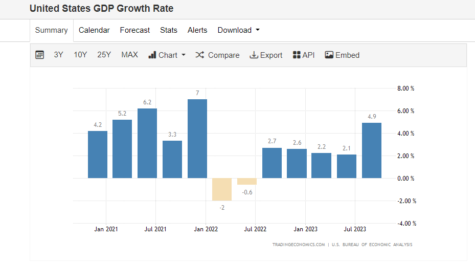 🚨 🚨 U.S. GDP growth registered at an impressive 4.9% in Q3, surpassing the predicted 4.5%