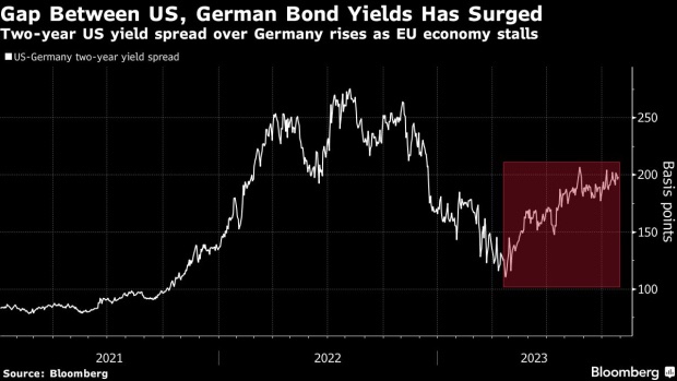 🇪🇺 🇪🇺 Money managers at J.P. Morgan Private Bank, Blackrock Inc. and Baring Investment Services Ltd. say there’s a *stronger case for buying European bonds* as the *economy weakens.* They’ll be closely watching the *inflation report on Tuesday,* which is expected to show that price *growth dropped to 3.1%,* the *lowest level in more than two years*