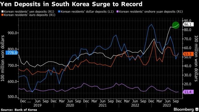 🇯🇵 🇰🇷 South Koreans are celebrating after the yen fell to its lowest level against the won in 15 years. They’re traveling to Japan in their hordes and almost doubling their purchases of Japanese goods