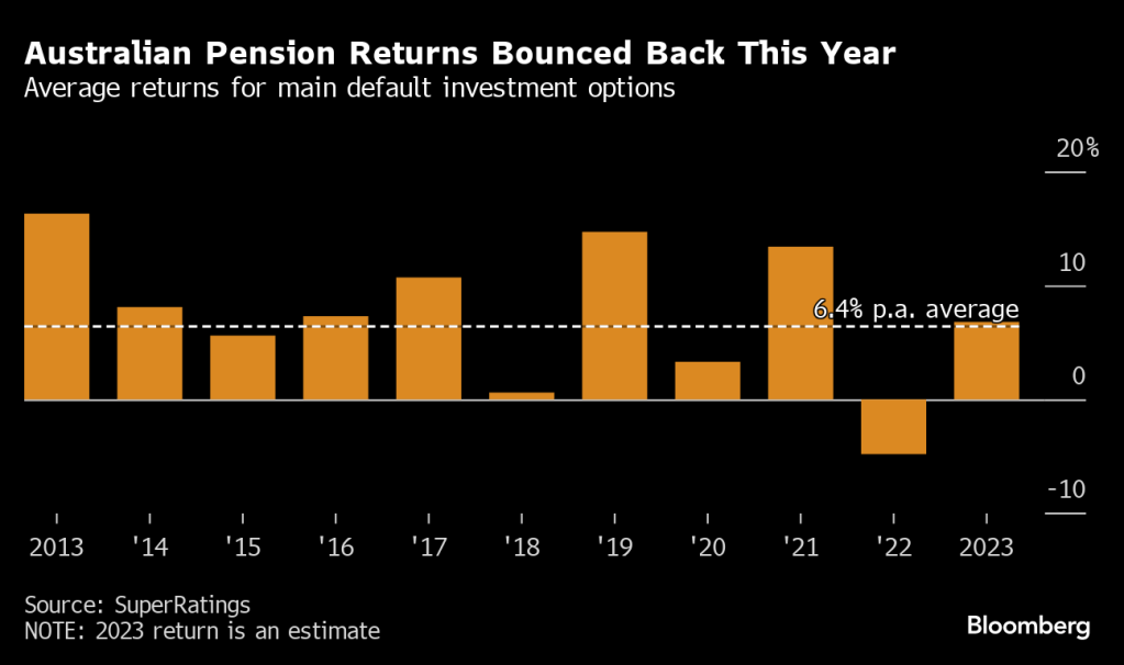🇦🇺 🇦🇺 Australia’s pension funds are expecting another year of volatility as inflation pressures continue to fuel uncertainty for the A$3.6 trillion ($2.4 trillion) industry, which holds almost half its assets offshore. Funds remain wary of the market’s exuberance that spiraled after the Federal Reserve pivoted toward rate cuts next year
