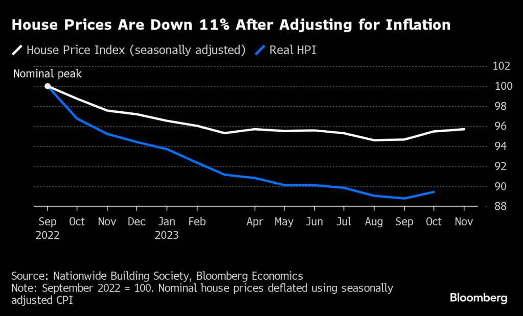 🇬🇧 🇬🇧 UK house prices have plunged by 11% in real terms in just over a year, revealing the true extent of the downturn in the property market, calculations by Bloomberg Economics show