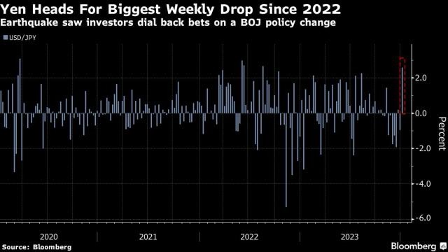 🇯🇵 🇯🇵 The yen capped its worst week against the US dollar in 16 months, as the economic fallout from a powerful earthquake curbed the likelihood that the Bank of Japan will soon scrap negative rates