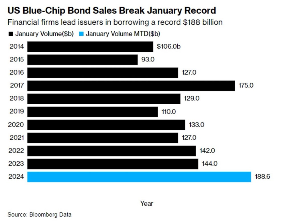 🇺🇸 🇺🇸 Corporate bond sales hit $188.6 billion in the US in January, setting a record for the month. “We could easily see $200 billion of sales this month”