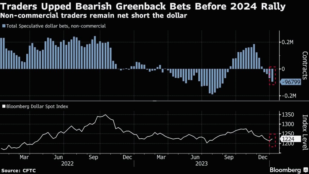 💰 💰 Non-commercial traders — a group that includes hedge funds, asset managers and other speculative market players — added to their short positions on the dollar in the week ended Tuesday, according to CFTC data. Roughly 96,800 contracts worth almost $10 billion are now tied to expectations that the US currency will fall, up more than 26,000 from the previous week and the most bearish since late August