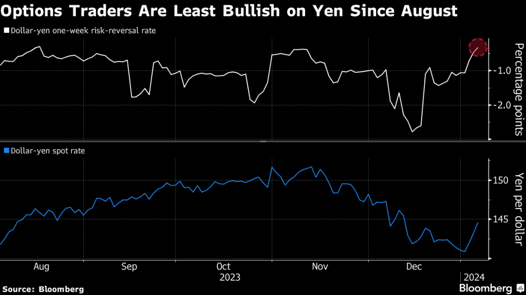 🇯🇵 🇯🇵 A key options-based gauge of short-term positioning shows traders are the least bullish on the yen since August, with yen selling by speculative accounts seen Thursday from Tokyo to New York