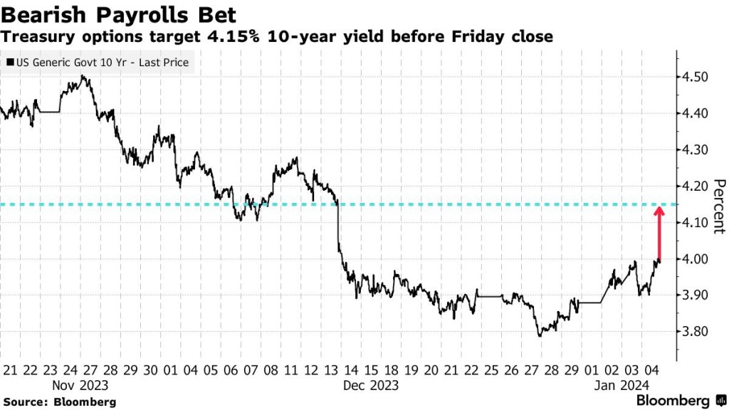 🚨 🚨 An options trade is targeting a surge in US 10-year yields to as high as 4.15% by Friday’s close of business, or a jump of about 0.15 percentage points from Thursday’s closing level
