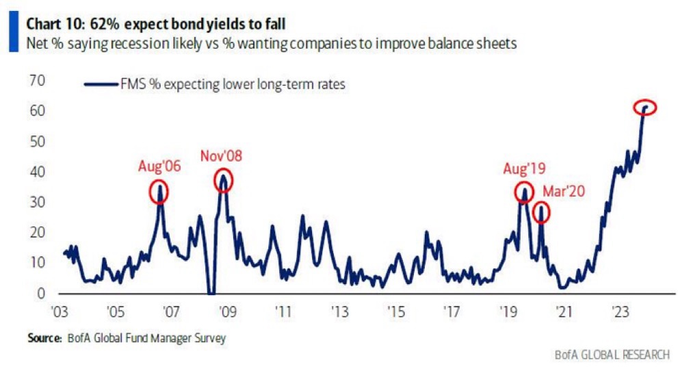 🇺🇸 🇺🇸 62% of institutional investors expect bond yields to fall, pushing bond prices higher. Just 6 months ago, only 10% of institutional investors held this view