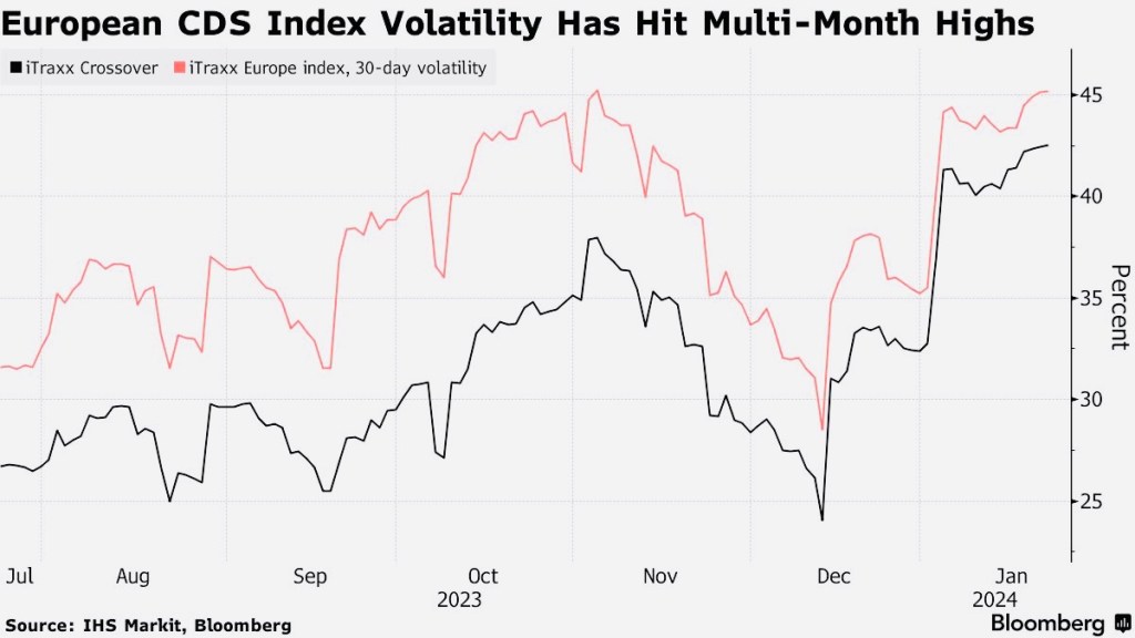 🚨 🚨 Money Managers are buying credit default swaps to insure against the pain that could be unleashed if central bankers fail to cut rates and deliver what bond traders have already priced in for the year