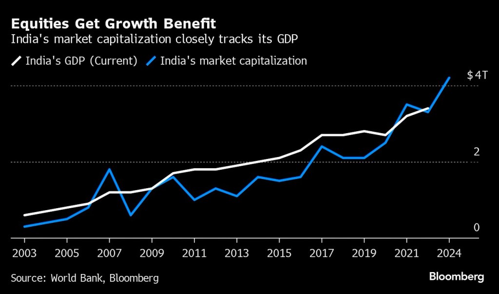 🇮🇳 🇮🇳 India’s stock market value is set to more than double to $10 trillion by 2030, going by its history of delivering double digit returns and expectations of continued economic reforms, according to Jefferies Financial Group Inc