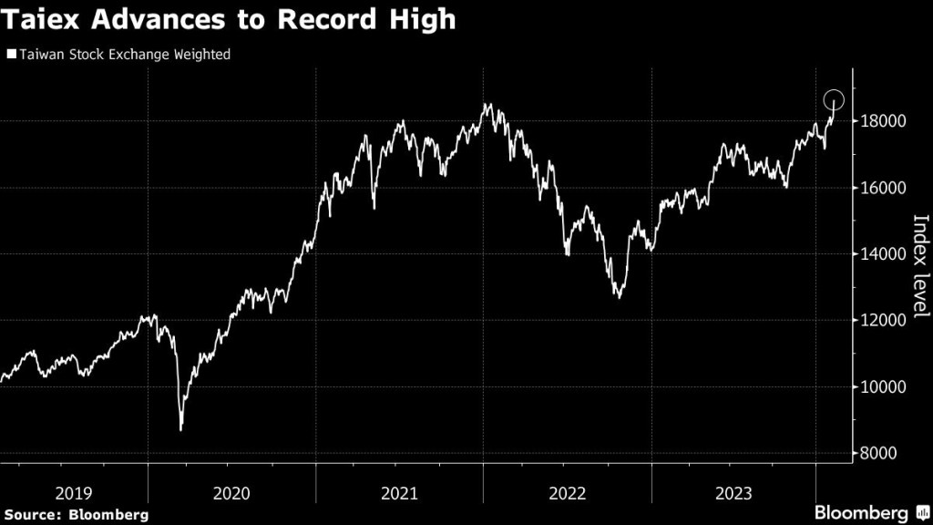 🇹🇼 🇹🇼 Taiwan’s stock benchmark surged to its highest level on record, as expectations of booming demand for artificial intelligence technology drove investor sentiment