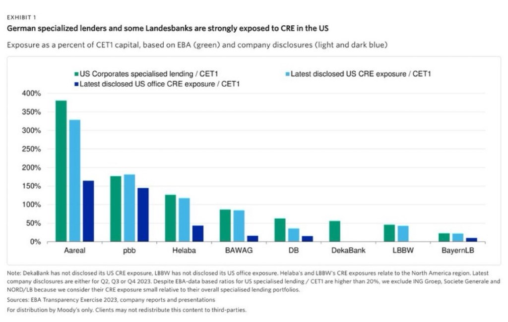 🇺🇸 🇺🇸 According to Moody’s, Germany’s Aareal Bank & Deutsche Pfandbriefbank have the largest exposure to US commercial real estate compared with their capital levels