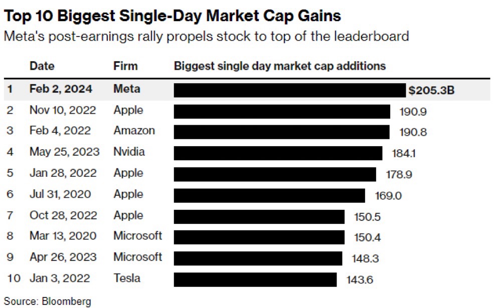 🪢🪢 Meta has added $205 billion in market cap today making it the biggest single day gain in history