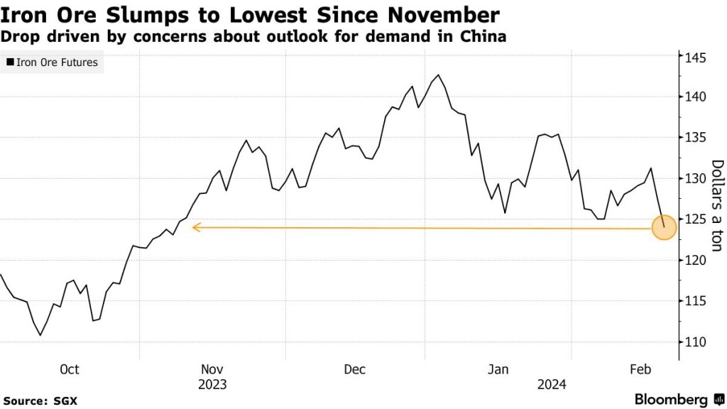 🚨 🚨 Iron ore prices have plunged more than 23% since the beginning of the year, and are down 12% over the past one month. ANZ says prices may be near a floor amid a reset in expectations around demand