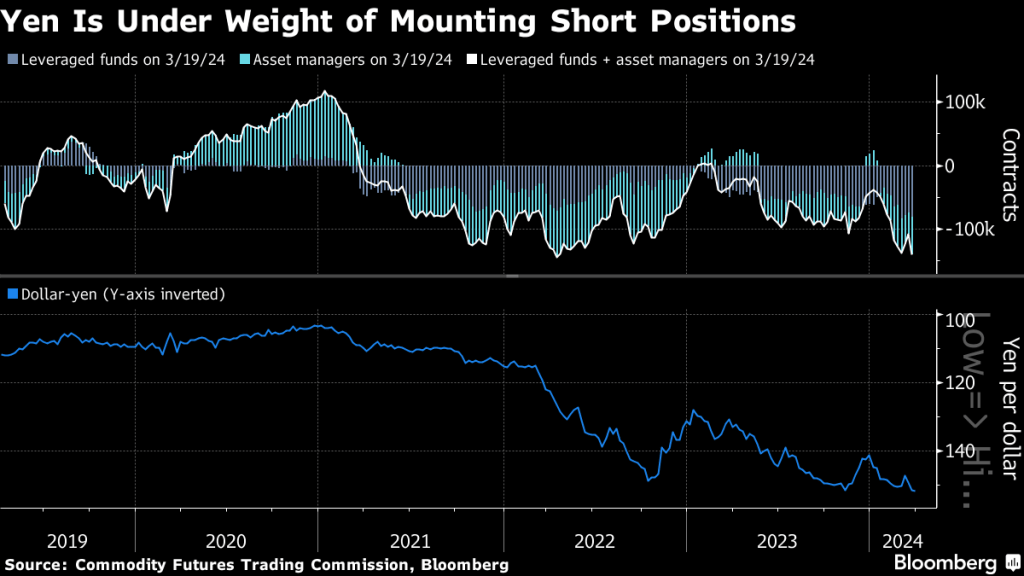 🇯🇵 🇯🇵 Hedge funds and asset managers combined held a near-record level of bearish positions against Japan’s currency last week, according to data from the Commodity Futures Trading Commission going back to 2006