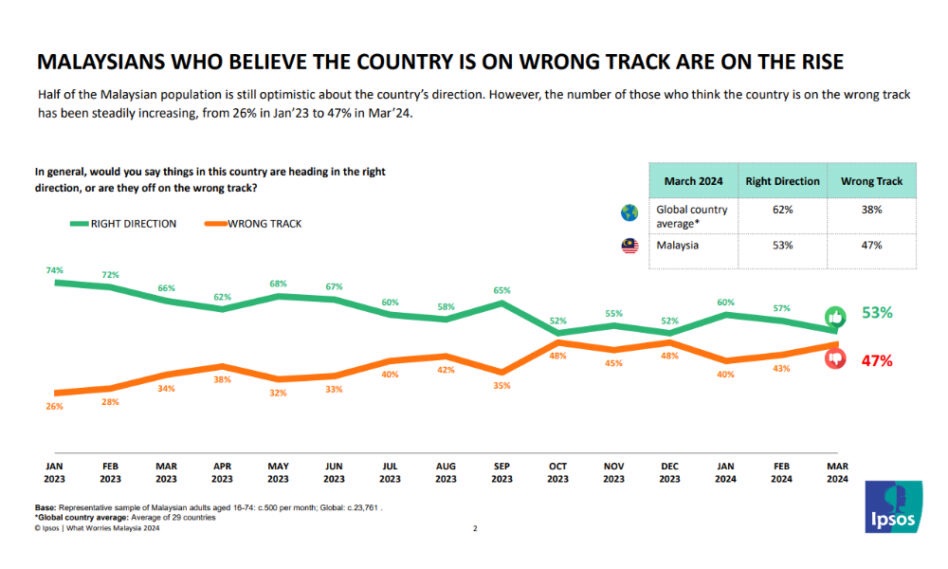 🇲🇾 🇲🇾 A recent survey found that more Malaysians are worried about where the country is headed, with corruption being the biggest concern among those polled. This was despite Prime Minister Anwar Ibrahim’s repeated pledge of his commitment against graft.Other worries include bread-and-butter issues, even as economic growth has begun to pick up in the first quarter of 2024