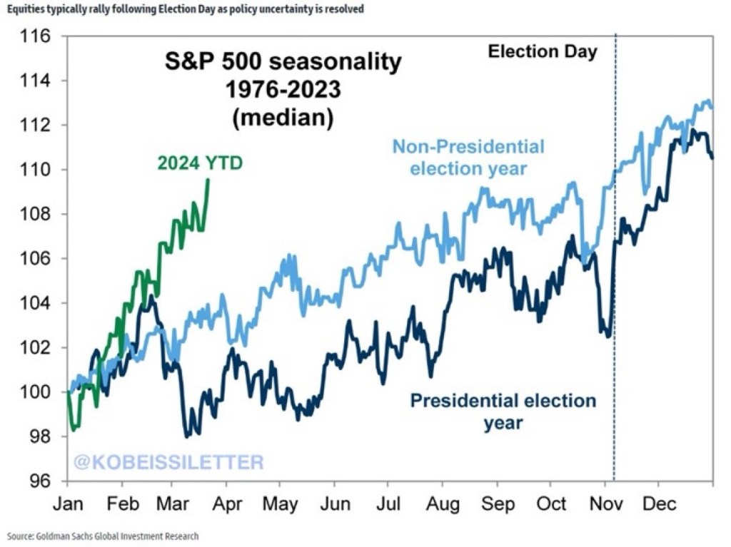 🇺🇸 🇺🇸 The S&P 500’s performance has been truly outstanding this year. The index is up 9% year to date which is more than DOUBLE the average YTD return in an election year