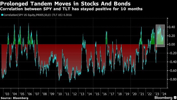 🚨 🚨 The 50-day correlation between the iShares 20+ Year Treasury Bond ETF (ticker TLT) and SPDR S&P 500 ETF Trust (ticker SPY) has stayed positive for 10 months now in the longest stretch on record. This is creating a headwind for a popular quant strategy that seeks to diversify risk across assets