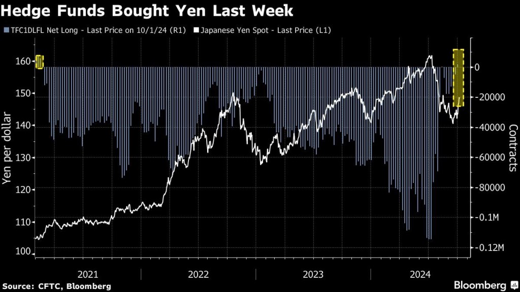 🇯🇵 🇯🇵 Speculative investors flipped to a net long position on the yen for the first time since mid-August, Commodity Futures Trading Commission data for the week to Oct. 1 showed. The buying came right before Prime Minister Shigeru Ishiba said the nation wasn’t ready for further interest rate hikes