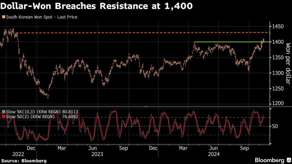 KRW To Weaken Further Posted on November 18, 2024 by http://wealthcreation.club 🇰🇷 🇰🇷 The South Korean won, the second-worst performing currency in Asia this year, looks poised to weaken furtherRead More: https://tinyurl.com/ynj3tjax Share this: Share on X (Opens in new window) X Share on Facebook (Opens in new window) Facebook Like Loading... Published by http://wealthcreation.club http://wealthcreation.club—We are educating regular people about how to be able to make more money in a disciplined way View all posts by http://wealthcreation.club