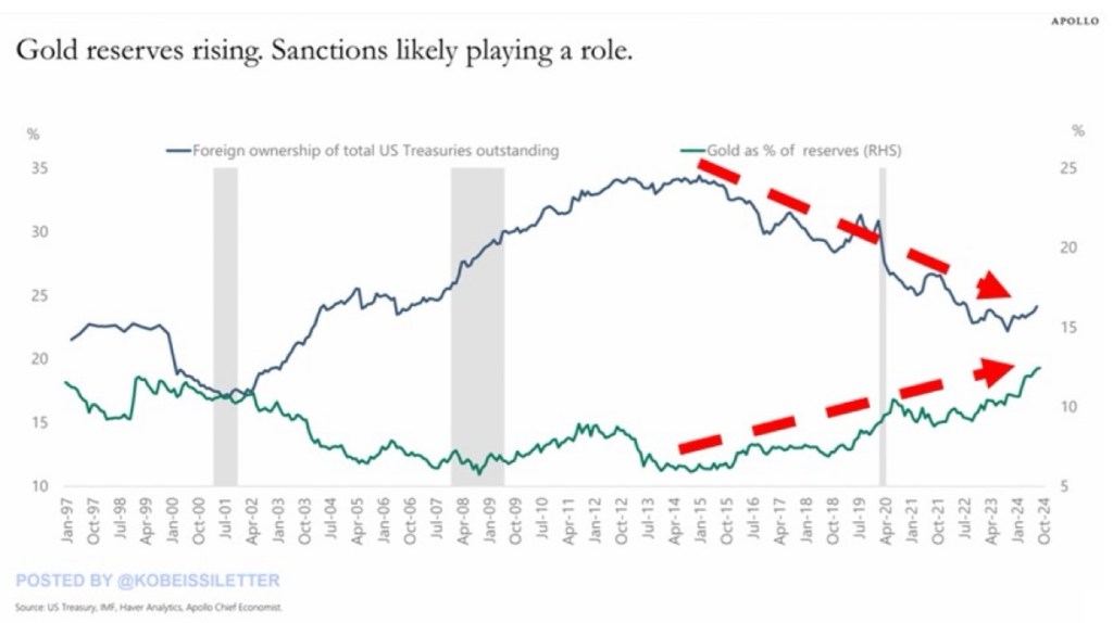 Gold: Central Banks Own More Now Posted on November 22, 2024 by http://wealthcreation.club 🚨 🚨 BREAKING: Global central banks now own 13% of total gold reserves, the most since the 1990sRead More: bit.ly/Gold-Central-Banks Share this: Share on X (Opens in new window) X Share on Facebook (Opens in new window) Facebook Like Loading... Published by http://wealthcreation.club http://wealthcreation.club—We are educating regular people about how to be able to make more money in a disciplined way View all posts by http://wealthcreation.club