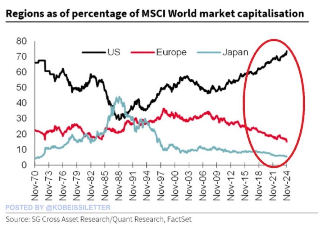 US Stock Market Is Massive Posted on December 3, 2024 by http://wealthcreation.club 🚨 🚨 US stock market capitalization accounts now for 74% of the MSCI World Index, a new all-time highRead More: bit.ly/US-Stocks-Massive Share this: Share on X (Opens in new window) X Share on Facebook (Opens in new window) Facebook Like Loading... Published by http://wealthcreation.club http://wealthcreation.club—We are educating regular people about how to be able to make more money in a disciplined way View all posts by http://wealthcreation.club