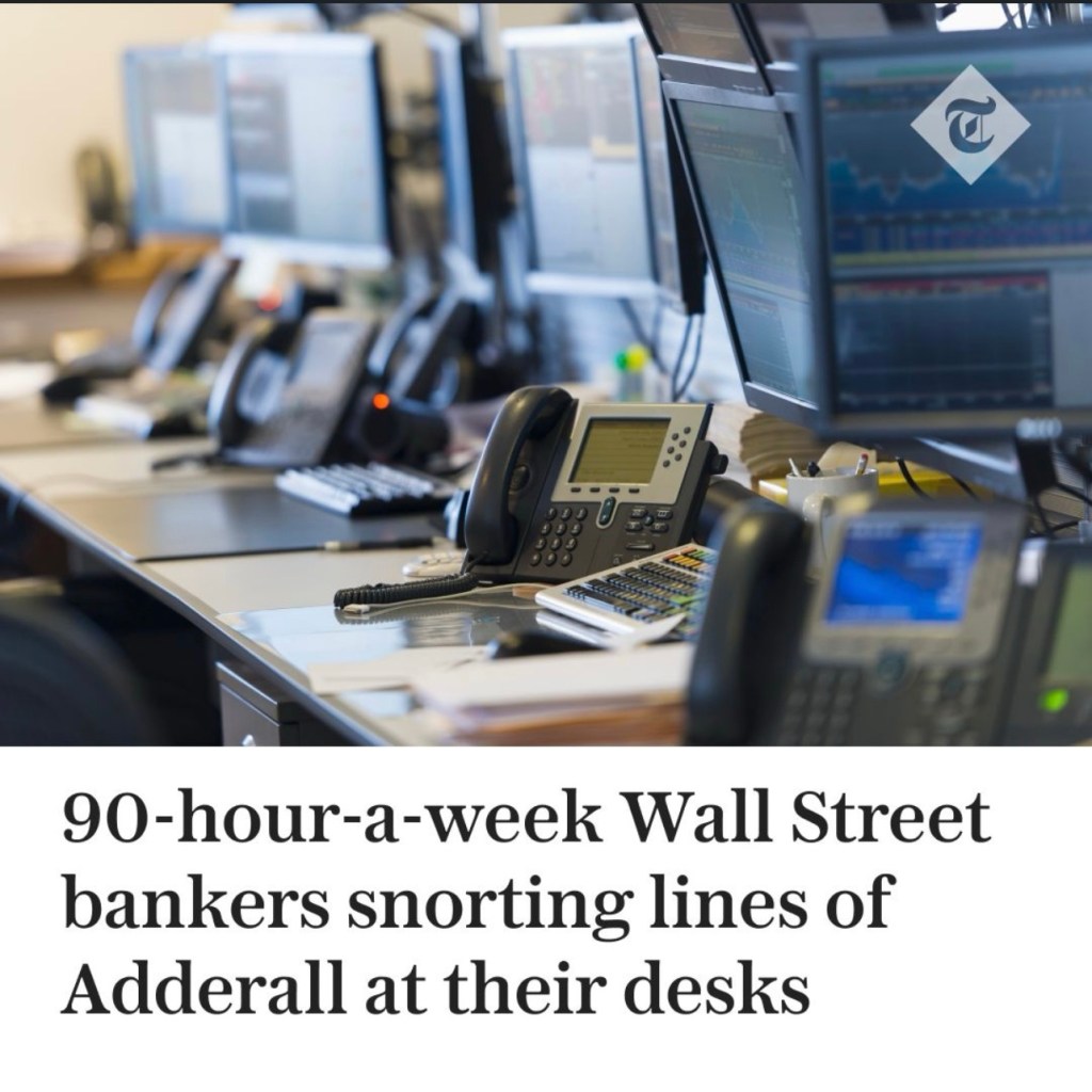 💊 💊 Still Trust Your Wall Street Banker? Reports reveal a troubling trend among young Wall Street bankers enduring 90-hour workweeks, with many turning to Adderall