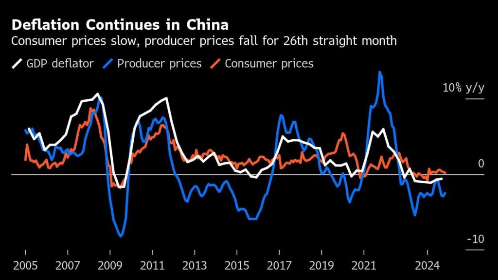 BREAKING: China’s consumer inflation weakened further toward zero, decelerating for a fourth straight month in a setback for the government’s efforts to drive up demand by injecting stimulus into the economy.