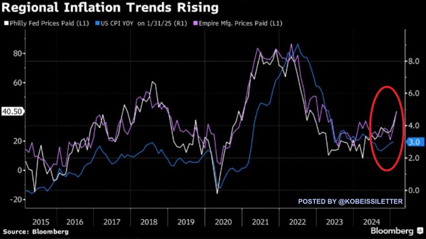 At the same time, the NY Empire State Prices Paid index surged 11.1 points, to 40.2, the highest since March 2023.