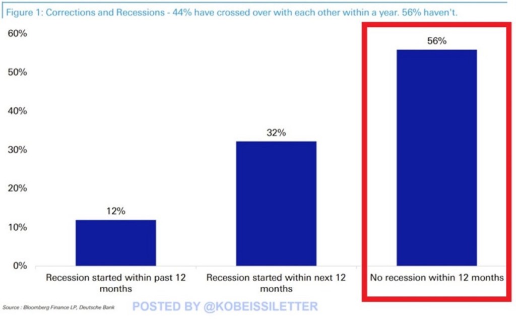 In other words, market corrections are only accompanied by a recession ~44% of the time.