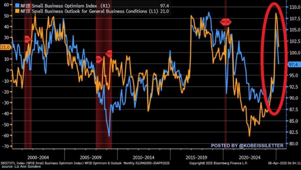 Small Business Confidence Plummets: The NFIB Small Business Optimism Index fell 3.3 points in March 2025, reaching 97.4, its lowest level since October and below the 51-year historical average of 98
