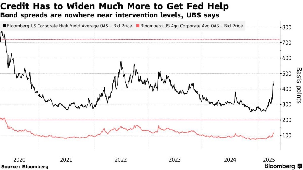 Fed on Hold: UBS Sees Low Credit Spreads Indicating No Immediate Action Needed: It estimates US high-grade spreads would have to move about 200 basis points above Treasuries and junk bonds 720 basis points over to get the Fed to move