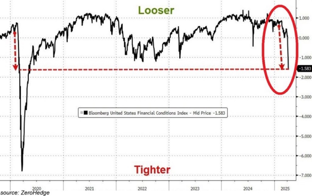 BREAKING: U.S. financial conditions have tightened to their most restrictive levels since the 2020 pandemic, surpassing even the pressures experienced during the aggressive Federal Reserve rate hikes of 2022