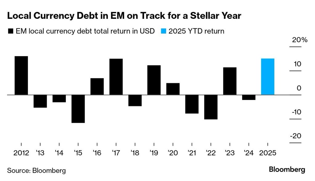 🚨 Global money managers are eyeing the Fed’s pivot back to rate cuts as the game-changer fueling one of the most powerful emerging-market bond rallies in years