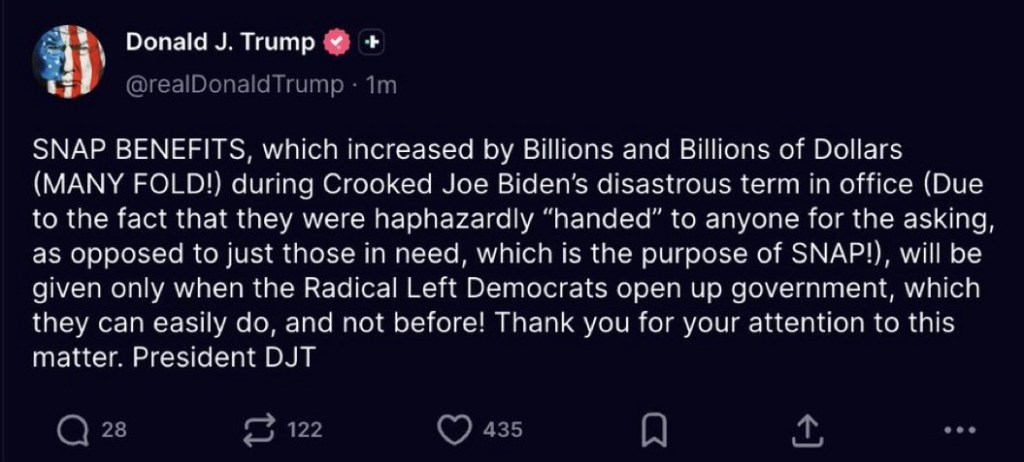SNAP Freeze Puts $8.2B Monthly at Risk Posted on November 5, 2025 by http://wealthcreation.club 🚨 BREAKING: SNAP Freeze Puts $8.2B Monthly at RiskRead More: tinyurl.com/4rndvkh5#SNAP #Macroeconomics #MarketUpdate #USPolitics #FiscalPolicy #ConsumerSpending #RecessionRisks #Inflation #GovernmentShutdown #FinanceProfessionals Share this: Click to share on X (Opens in new window) X Click to share on Facebook (Opens in new window) Facebook Like Loading... Published by http://wealthcreation.club http://wealthcreation.club—We are educating regular people about how to be able to make more money in a disciplined way View all posts by http://wealthcreation.club