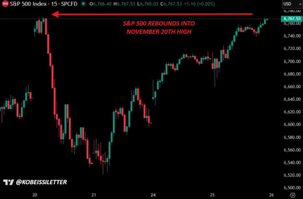 S&P 500 has ripped back November 26, 2025 http://wealthcreation.clubLeave a comment 🚨 The S&P 500 has ripped back, erasing the drawdown and putting fresh all-time highsRead More: bit.ly/Shallow-Drop#markets #SP500 #AIrevolution #equities #investing #assetallocation #Fed #macro #riskmanagement #portfoliostrategy #financetwitter #LinkedInFinance #HNW #institutionalinvestors