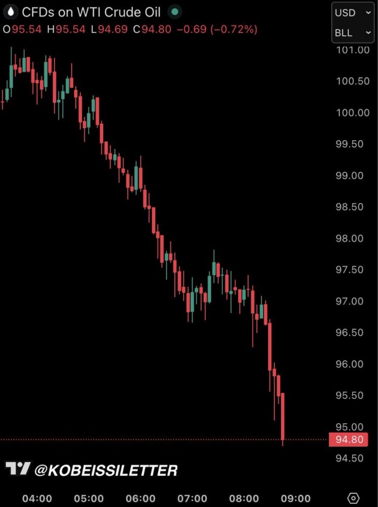 US oil prices extend losses Posted on March 16, 2026 by http://wealthcreation.club ‼️ BREAKING: US oil prices extend losses to drop below $94/barrel, now down -8% in 12 hours. Share this: Share on X (Opens in new window) X Share on Facebook (Opens in new window) Facebook Like Loading... Published by http://wealthcreation.club http://wealthcreation.club—We are educating regular people about how to be able to make more money in a disciplined way View all posts by http://wealthcreation.club